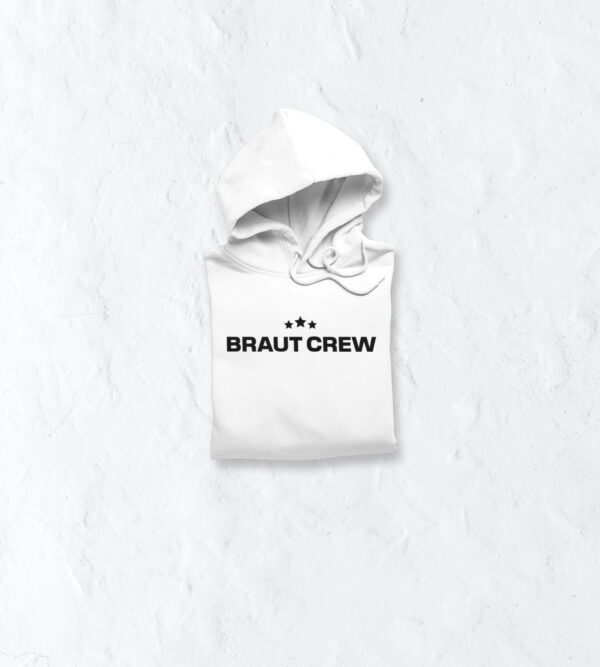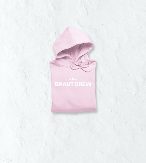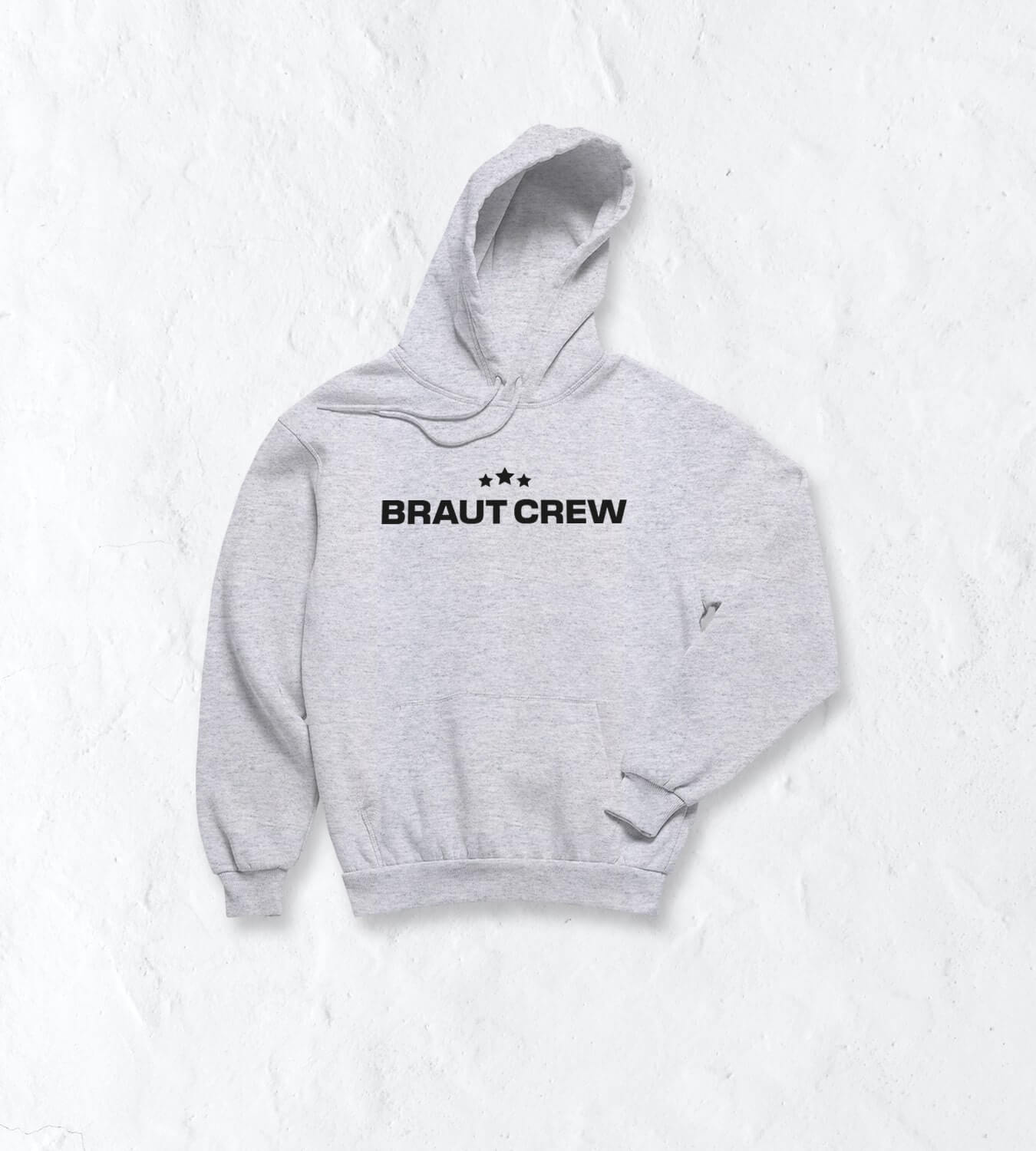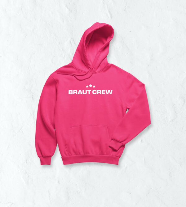 Lets go! Die Crew besteht aus vielen tollen Freundinnen, die sich immer gegenseitig unterstützen und den Junggesellinnenabschied planen. Zur Planung gehört nicht nur der richtige Ablauf, sondern auch die passende Kleidung. Unser Dorfmerch Kapuzenpullover zeigt zwei Elemente. Einmal die Brautcrew Schrift und die drei Sterne oberhalb des Schriftzuges. Das passende Gegenstück für die Braut findest du bei uns im Shop.