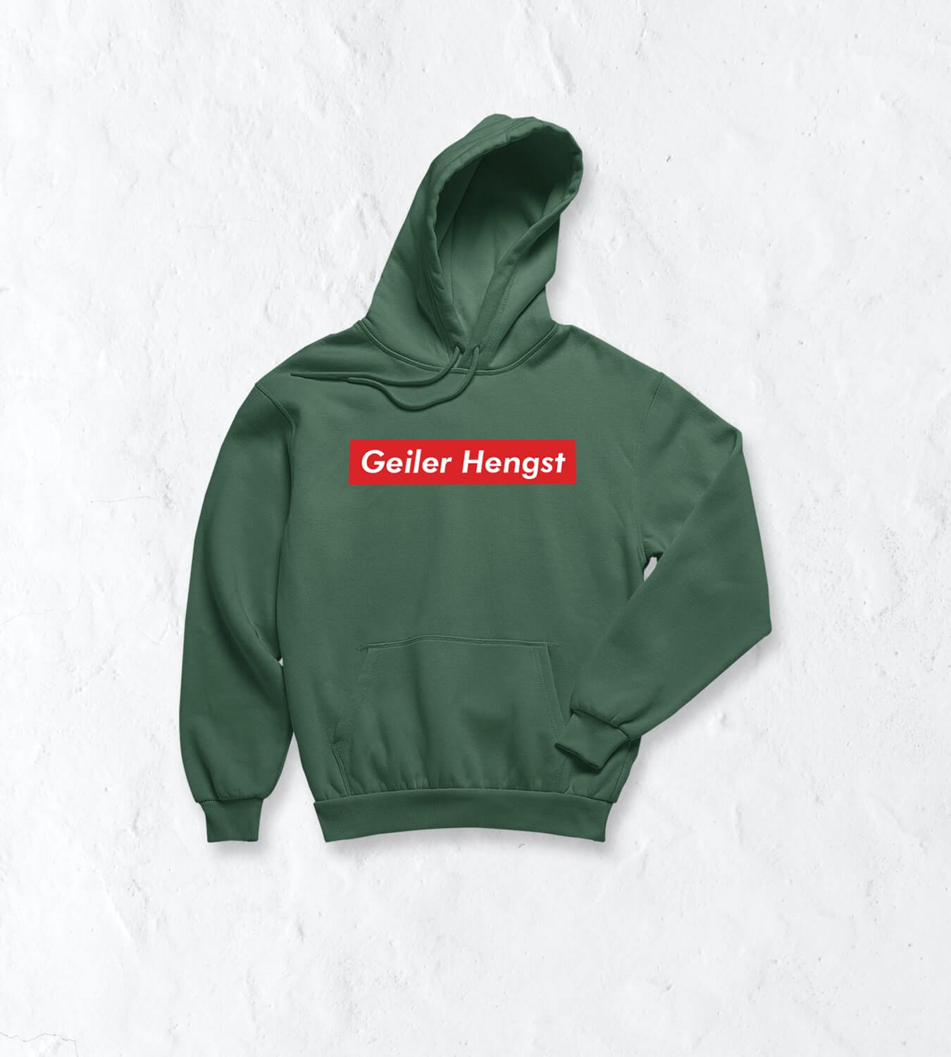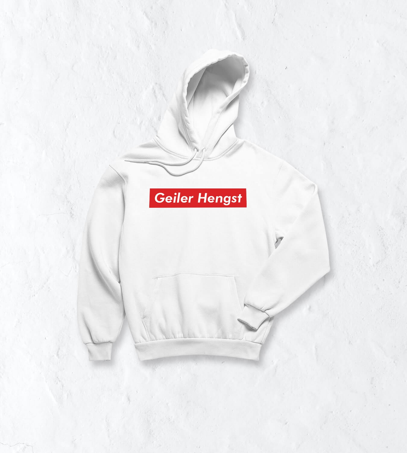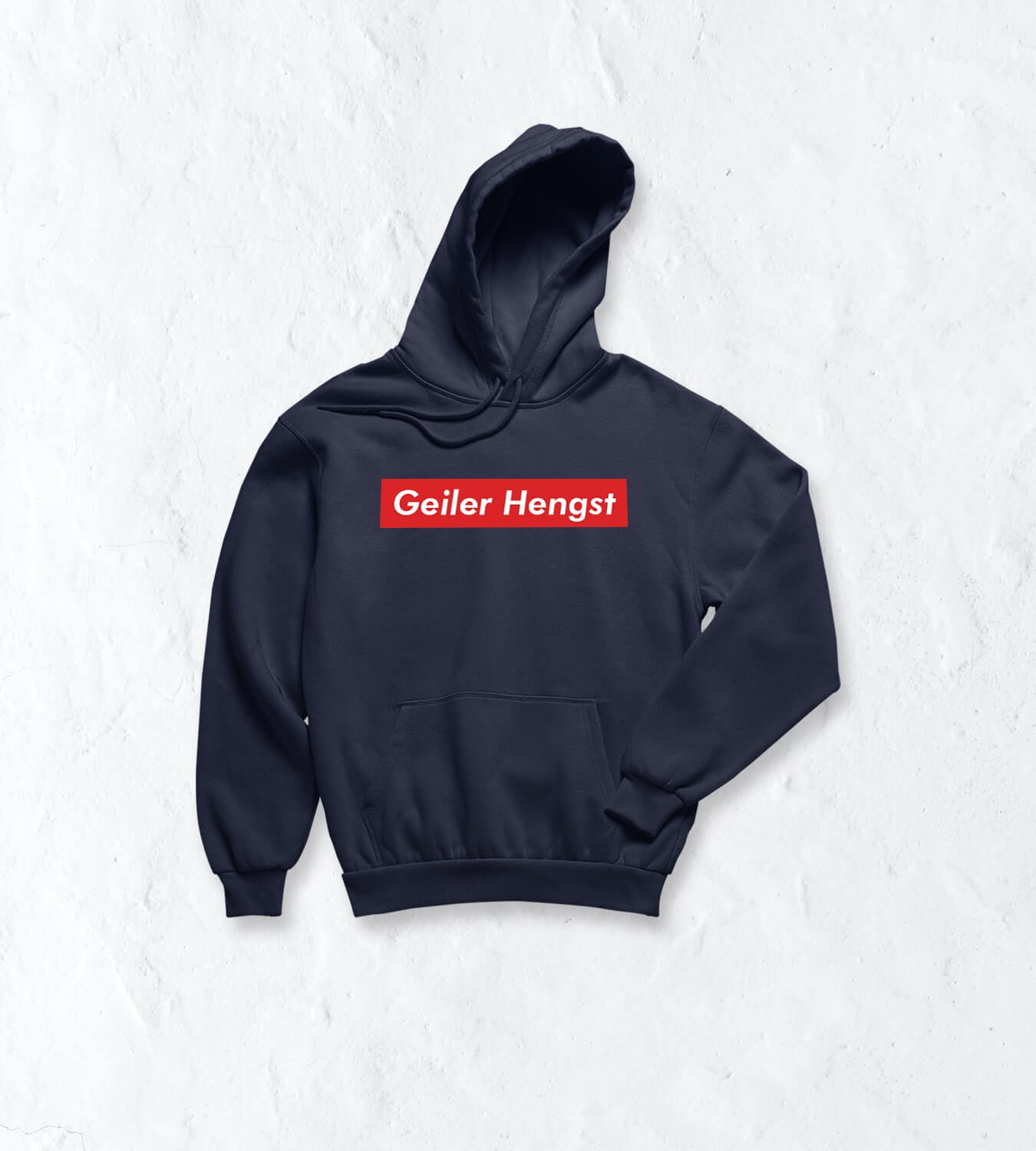Wer kennt den Ausdruck „Du geiler Hengst“ nicht!? Man sagt es mit einem Augenzwinkern und einem Schmunzeln im Gesicht, denn es ist einfach nur lustig gemeint. Zudem ist es aber auch in gewisser Weise anerkennende gemeint. Und genau dieses freche und lustige Feeling bringt man rüber, wenn man diesen Spruch prominent auf seinem Hoodie präsentiert. Ein Statement, das zeigt, wie locker und leicht du mit dem Leben umgehst. Bist halt ein geiler Hengst, oder?